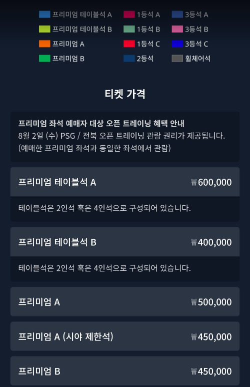 psg ticket 오픈 트레이닝 예매 사이트