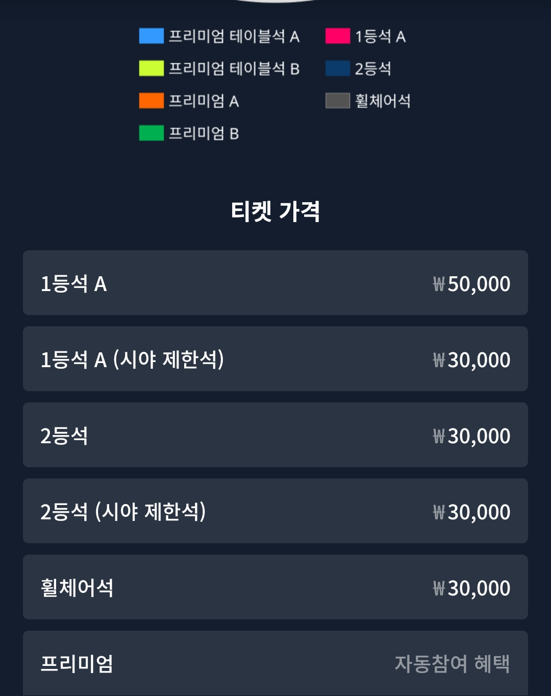 티켓 가격 티켓 좌석 배치도