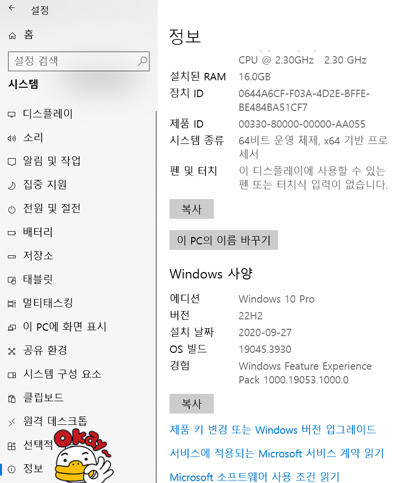 - 1GHz 이상의 호환 프로세서 또는 SoC(System on a Chip)