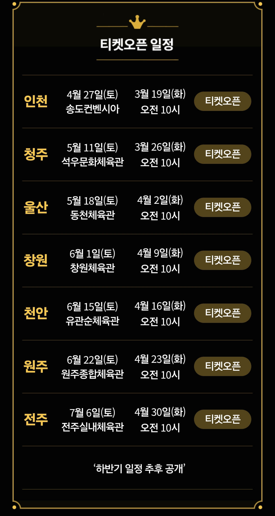 현역가왕 콘서트, 단 한 번의 공연으로는 부족해! 서울을 시작으로 안양과 창원, 광주, 부산, 전주, 인천, 대구, 울산 순으로 콘서트가 열립니다. 2024 현역가왕 전국투어 지역별 콘서트 예매 오픈