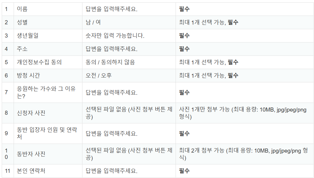 • 녹화장소: 경기도 일산 스튜디오 (상세 주소는 당첨 후 개별 안내)