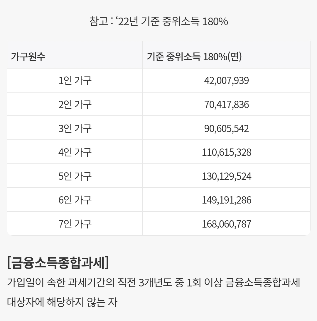 2023년 11월 기준 적용되는 기준중위소득 180%는 다음과 같습니다.